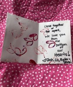 Time may vary according to your child’s interest, creativity, and how many cards they make! We made about four cards in a half-hour, and if my toddler hadn’t started finger painting on his face, we might have made more!